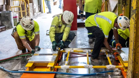 At SURF, site of the former Homestake Gold Mine in South Dakota, technicians and engineers are employing a modern approach to moving massive steel beams for the Deep Underground Neutrino Experiment, hosted by the U.S. Department of Energy’s Fermi National Accelerator Laboratory.