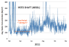 Figure 12: Radon levels at Yates Shaft area (4850 Level). A relatively low level period(~ 120Bq/m3) was observed during a three-month period in 2011.