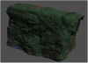 The thickness distributions of the as-built shotcrete layer on the inner surfaces of the LUX and MAJORANA laboratories are shown in Figures 6 and 7. The 3D rendition on the left depicts the actual cavity geometries after excavation, and the histogram to the right summarizes the accumulated thickness distribution sampling over the respective boundaries of the laboratory. The typical thickness is ~5 inches for the LUX cavity and ~4 inches for the MAJORANA laboratory. In terms of radioactivity, there are two main consequences of an added shotcrete layer; it could (a) attenuate some of the gammas from the bare rock, and (b) contribute additional radioactivity to the experimental halls.